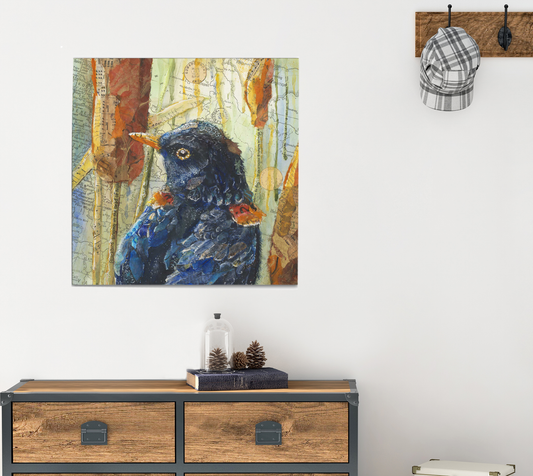 Blackbird and Cattails Collage Wall Art by Jacquie Masterson
