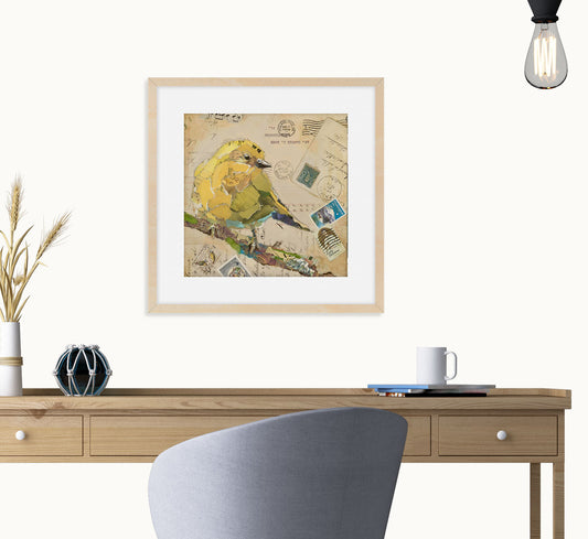 Yellow Warbler Bird Collage Wall Art by Jacquie Masterson