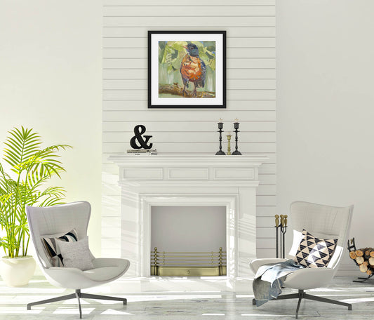 Robin Bird In Forest On Branch Collage Wall Art by Jacquie Masterson