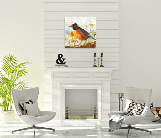 Unique Robin Bird Collage Wall Art by Jacquie Masterson